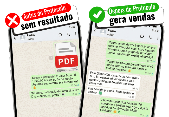Você vai receber o Protocolo Quebra Objeção: um Protocolo com scripts prontos (copia e cola) para você perder o medo, reverter os “nãos” e fechar vendas que antes pareciam perdidas, sem travar na hora de responder.